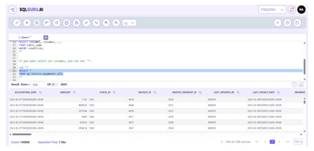 Convert natural language into accurate SQL using AI suggestions, making query writing simpler and reducing errors for users of all skill levels.